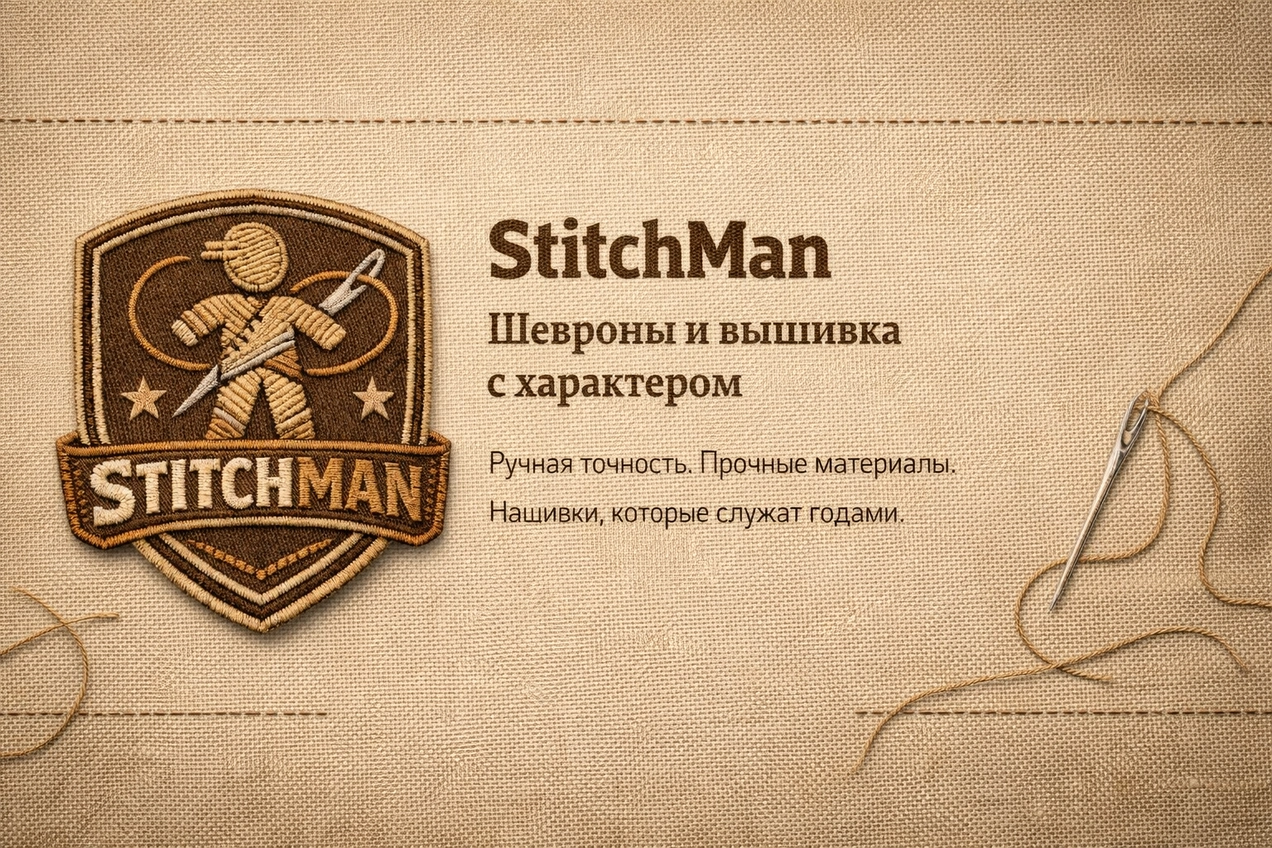 Нужен шеврон или вышивка? Мы поможем от идеи до готового изделия. Свяжитесь с нами — StitchMan знает, как прошить характер.
